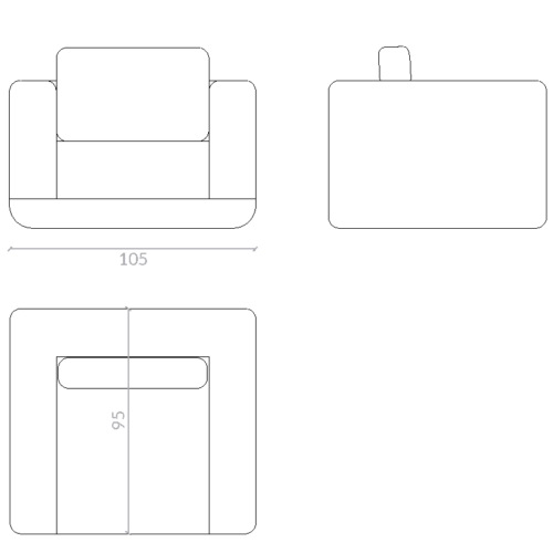 Sillón totalmente tapizado con patas ocultas. Respaldo bajo con cojín integrado, posibilidad de tapizar con dos tejidos.