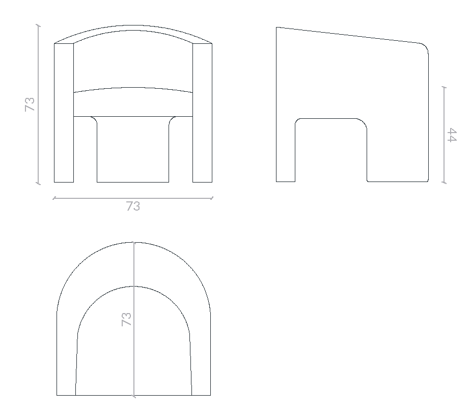 Respaldo curvado y brazos integrados. Estructura tapizada completamente, con opción de vivo perimetral en contraste.